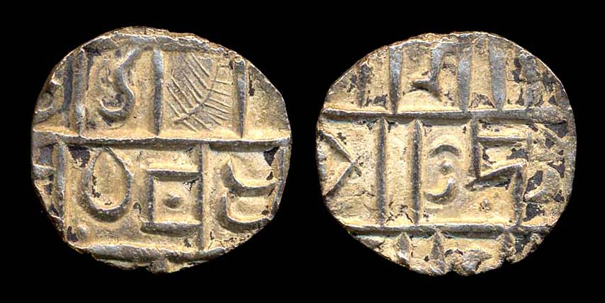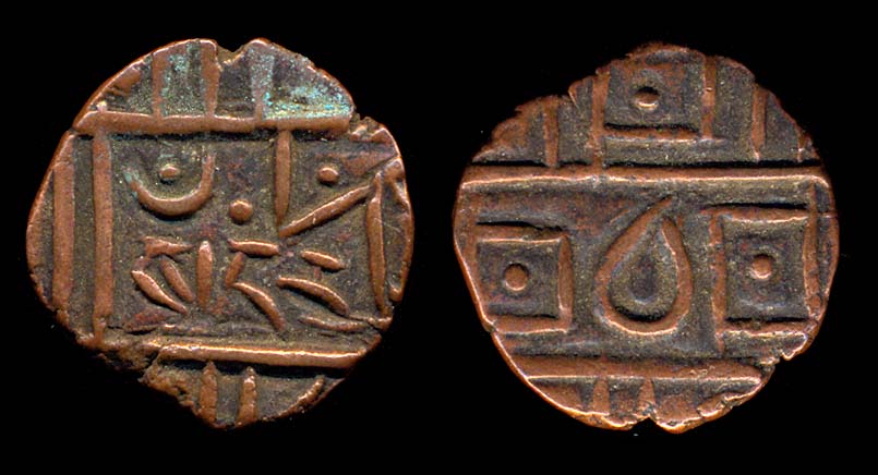 deb (1/2) rupee, K1, undated (c. 1790-1820), design modified from a coin