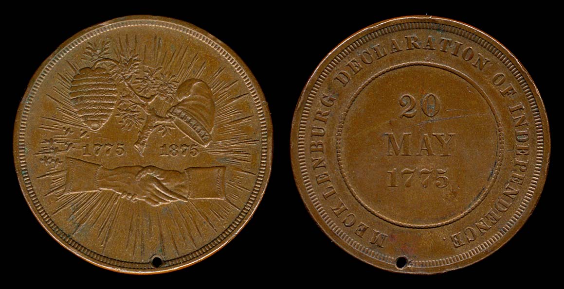 with beehive & Liberty cap, 1775 1875, shaking hands below / MECKLENBURG