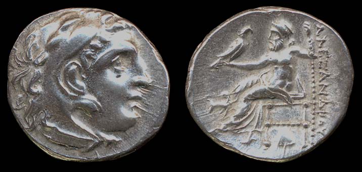 silver tetradrachm, SG-6723v, Price-3293a, head of Alexander as