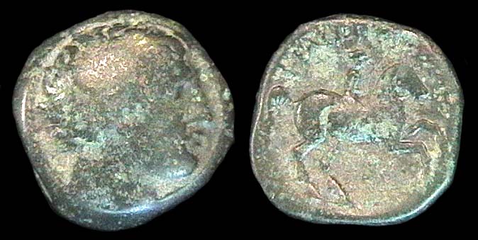 18mm bronze, SG-6787, head of Herakles R / horseman R, L