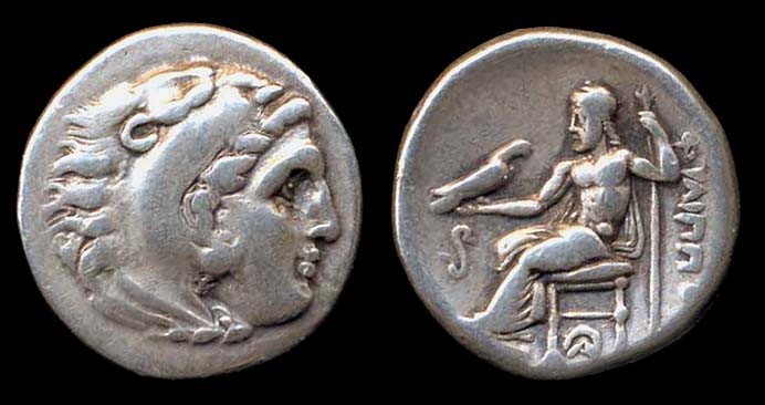 silver drachm, SG-6730+, Price-1554, head Alexander as Herakles R / Zeus