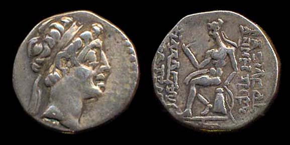 SNG Israel 1099v, radiate head R / Zeus standing L, Antiocheia ad Kallirhoen