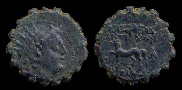 I, 162-150 BC, 13mm bronze serrate, SG-7028v,