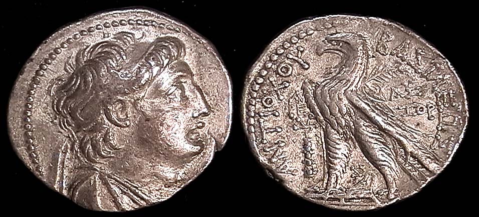 tetradrachm, SG-7105, bust R / eagle L, Tyre mint, year 185 (128 BC), GP