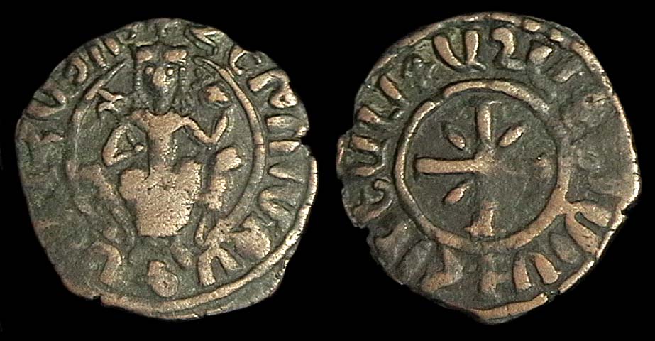 1/4 R / cross between stars, beard of 3 rows of dots,