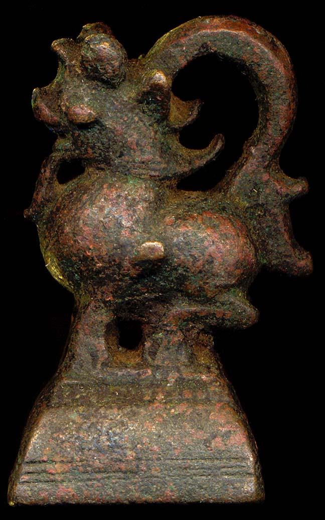 "opium" weight, to ("lion"), 10 kyat, 164.8g, nicely detailed & decorated,