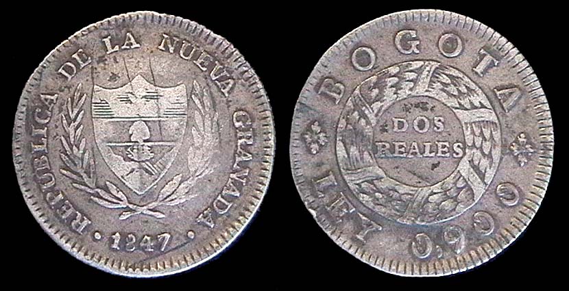 NUEVA GRANADA, silver 2 reales K105 1847 small