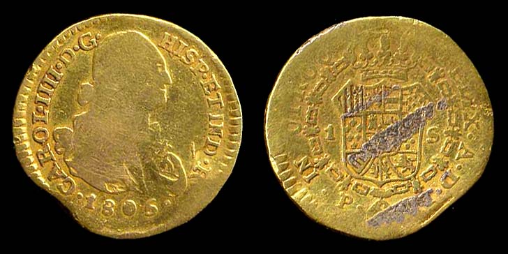 COLONY, gold 1 escudo K56.2 1806 PJT possible
