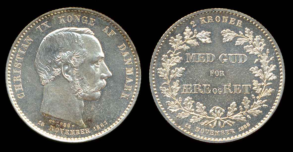 2 kroner K799 1888 25th anniversary of reign Unc $140.00