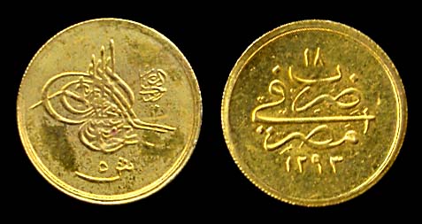 Hamid II, 1876-1908, gold 5 qirsh, K298, 1293