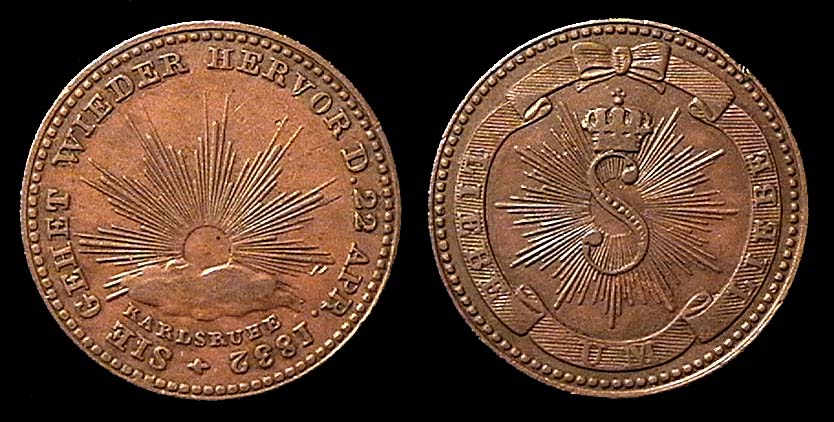 1 kreuzer, K-M1, 1832, for the recovery of Grand Duchess Sophia after birth