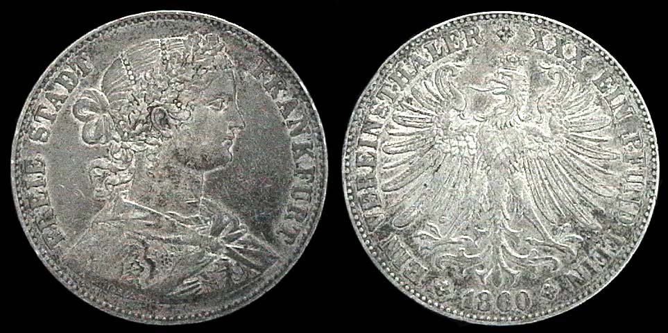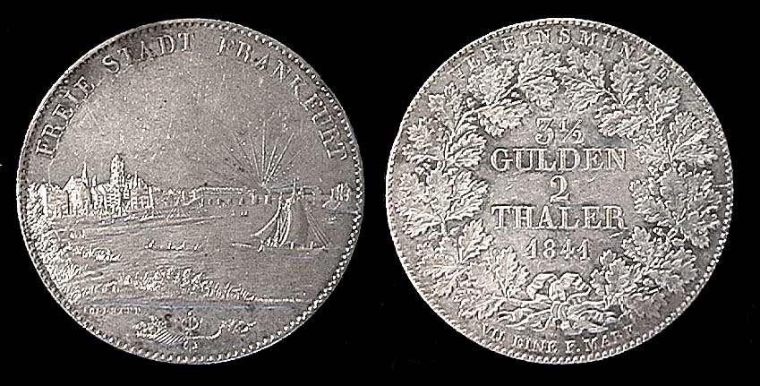 FRANKFURT, 2 thaler K326 1841 XF-AU $360.00
