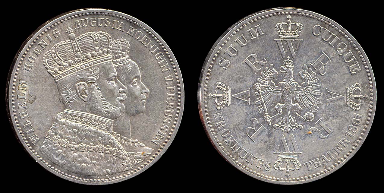 PRUSSIA, thaler K488 1861-A, coronation, XF+