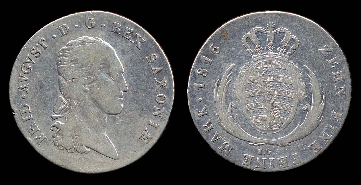 SAXONY, 1 thaler K1059.1 1816 edge nick,