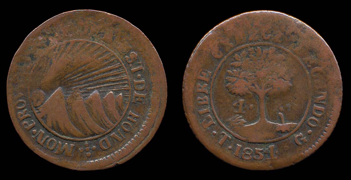 4 reales K20d 1856-TG, copper, crude VG-F $55.00