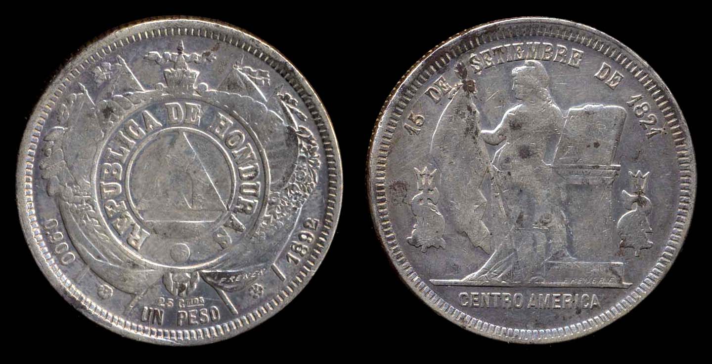 1 peso K52 1902/892/0 weak figure as usual, spots, VF $135.00
