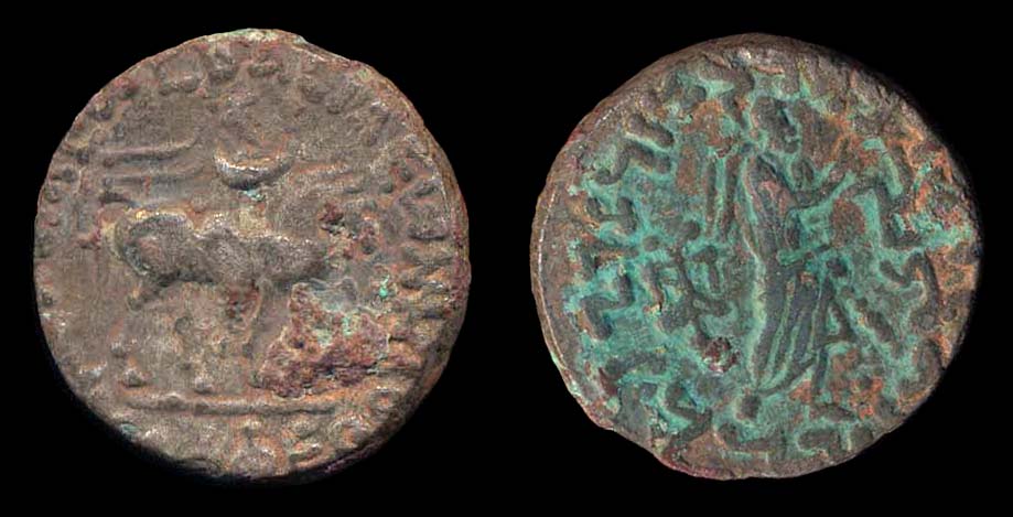 horseman L / Pallas standing R, Taxila Sirsukh, crusty F $22.00