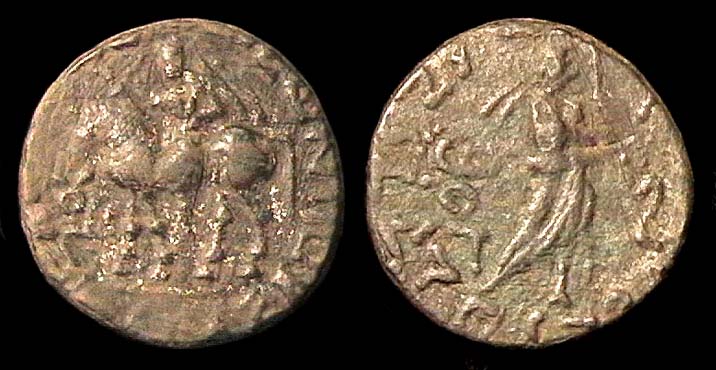 R / winged nike standing R, Demetrias in Arachosia, VG $45.00