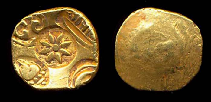1270-1311, gold padmatanka pagoda, ~16mm, ~3.5g, scyphate uniface