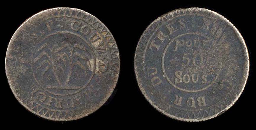 50 sous K2 ND (1822) part weak VG $65.00 sold