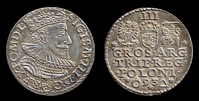 III, 3 groszy 1593 Marienburg, XF $121.00