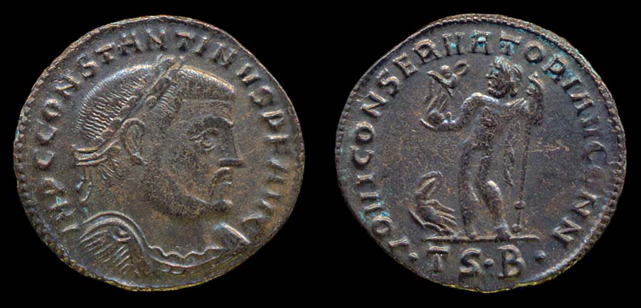bronze follis, SR-3862v, Jove standing, IOVI CONSERVATORI, TSB, 317/8 AD,