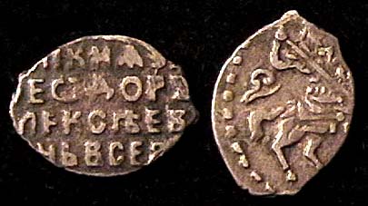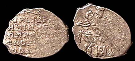 Feodorovich, 1613-45, silver kopek, M-8/5,