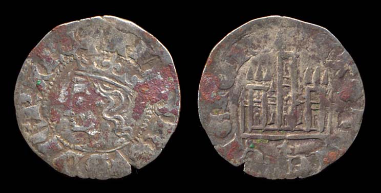 billon cornado, bust L / castle, La Coruna (scallop), crusty, crude