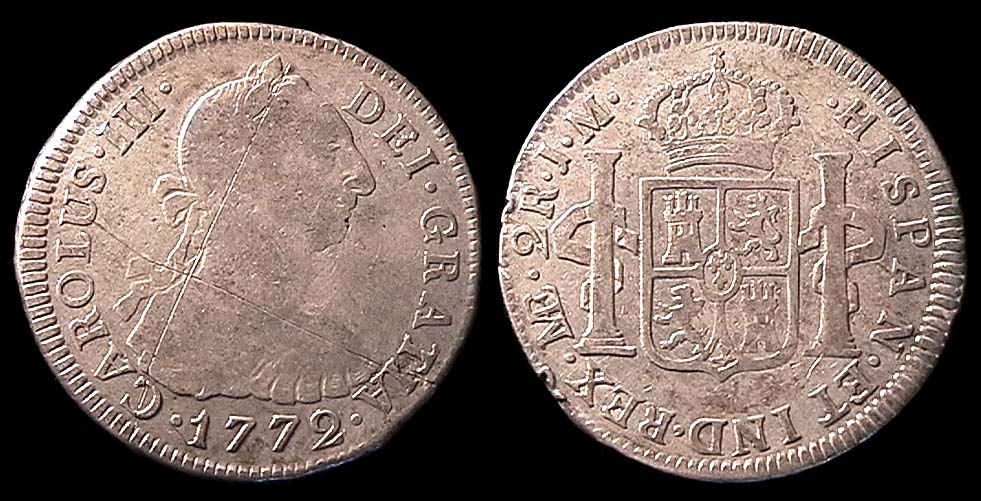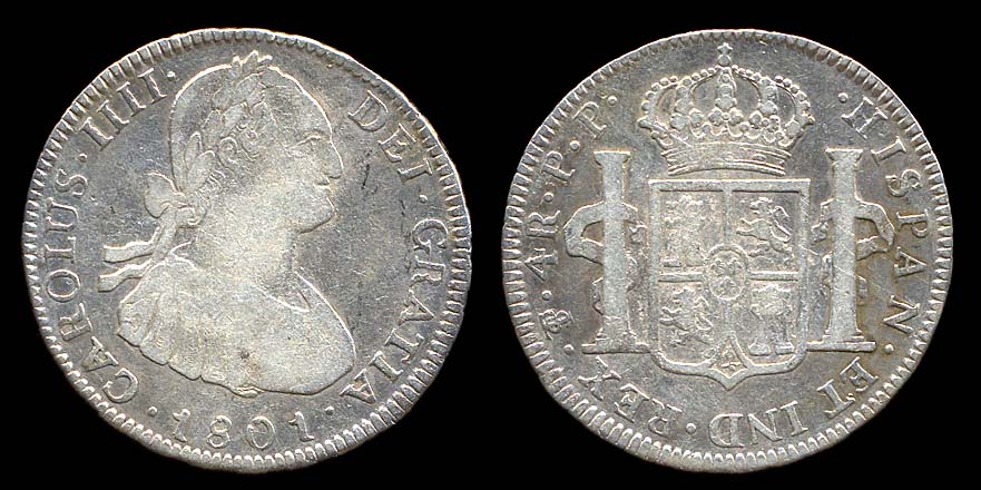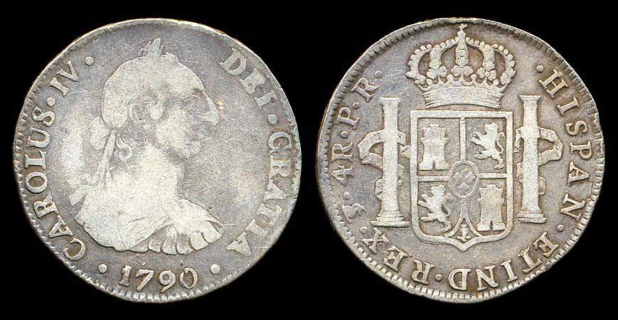 8 reales K87 1791 CAROLUS IV, chopmarks, F $100.00