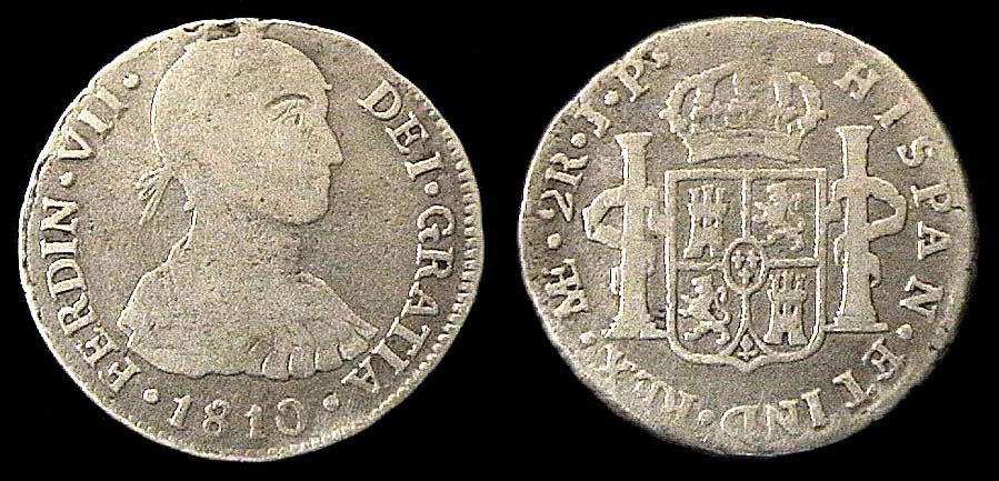 2 reales K104.2 1810 FERDIN VII, imaginary bust, VG+ $30.00