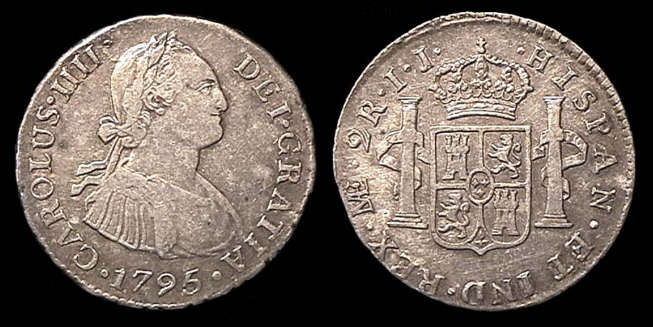 2 reales K95 1795-IJ cleaned VF+ $41.00 sold