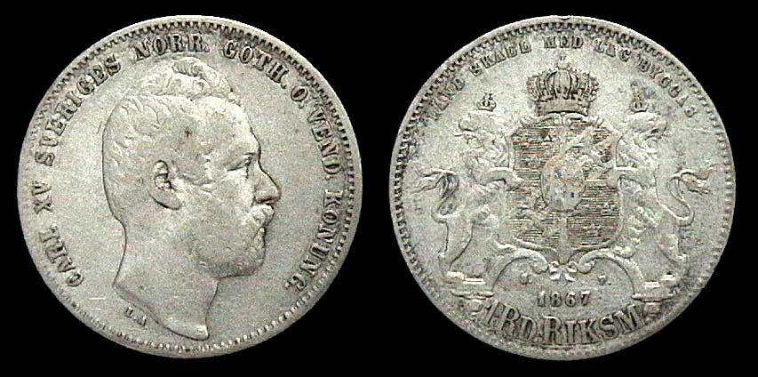 1 riksdaler K708 1867 tiny edge nick, F $53.00 sold