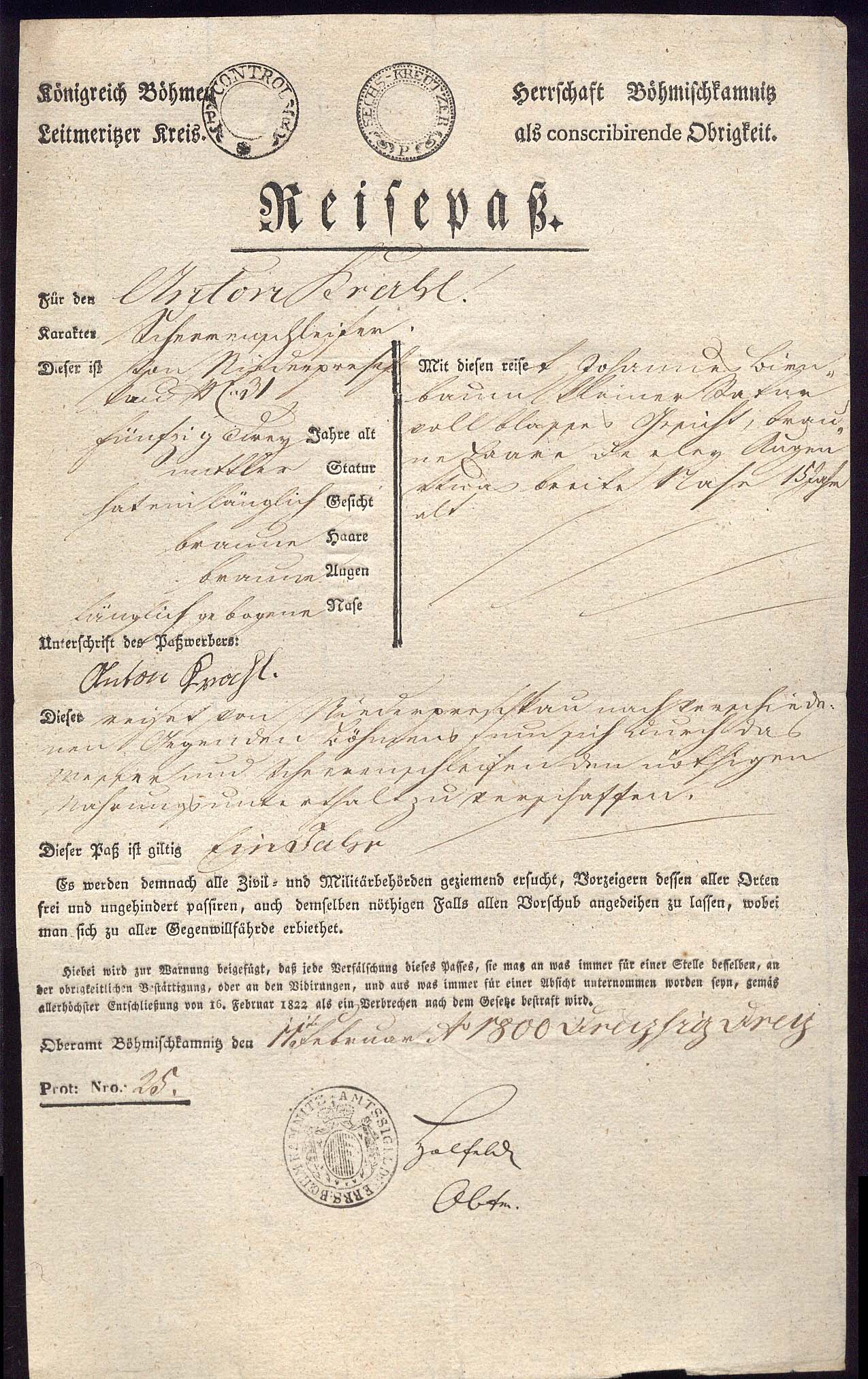 1857, printed document in Italian, filled out & signed by hand, 6 kreuzer