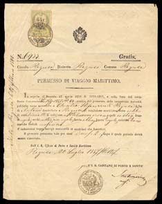 RAGUSA (Dubrovnik), permit for a maritime voyage for 18 year old boy,