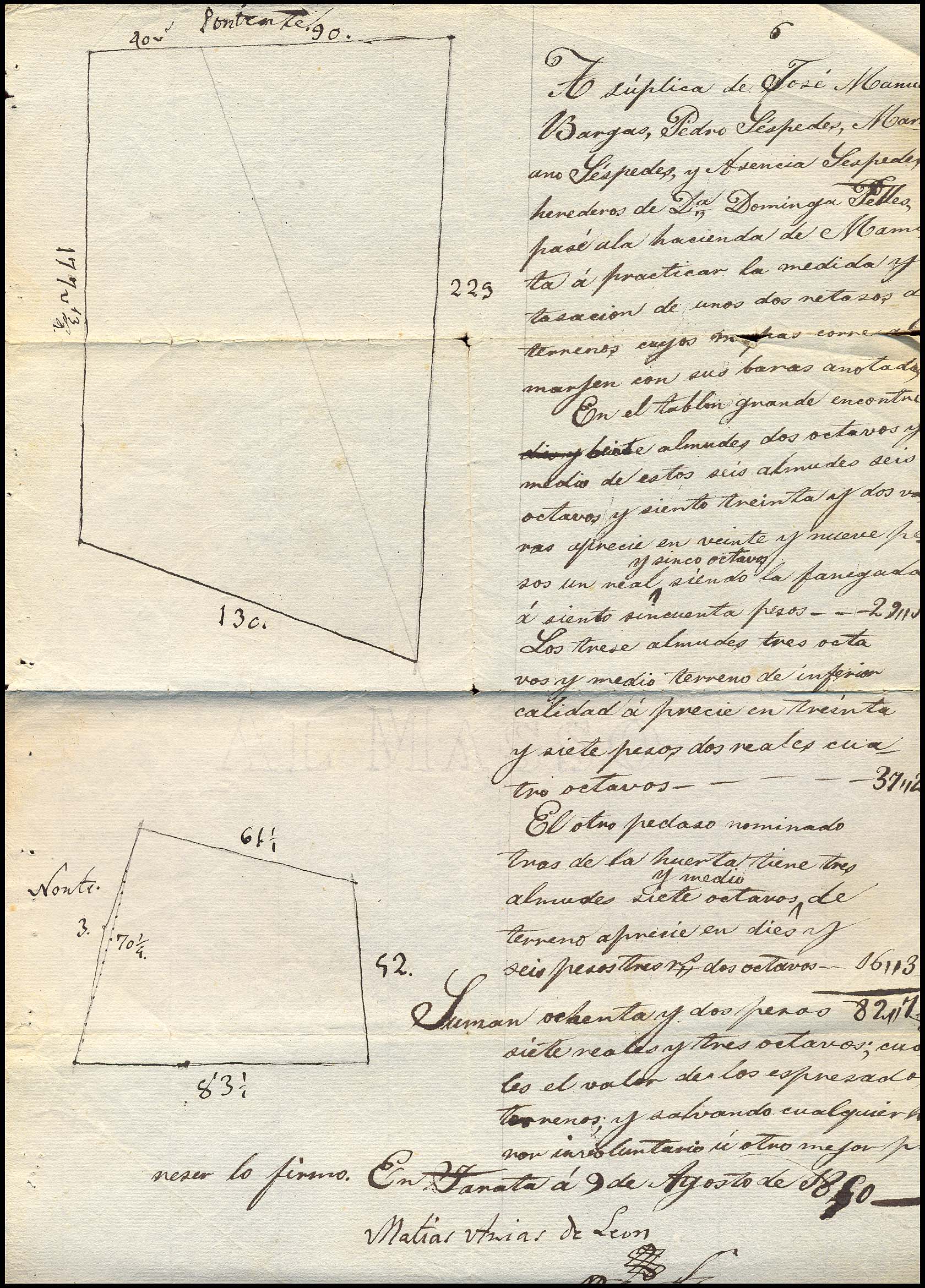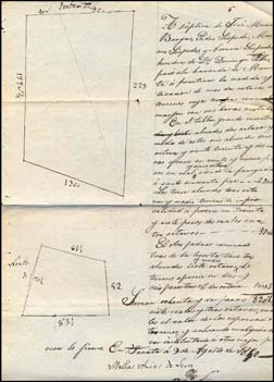 description with sketches of 2 real estate parcels, 1860, 219x317mm (~8.5x12.5"),