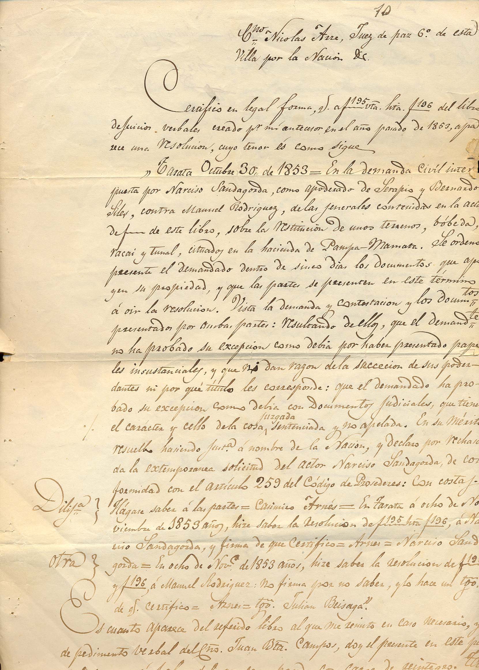 title deed for a real estate parcel, 1851, with validation statement, 1854,