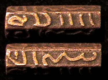 JAVA, 18x5.5mm hexagonal brass amulet, pseudo