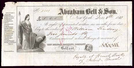 check by Abraham Bell & Son, New York, NY for 5 pounds, payable through