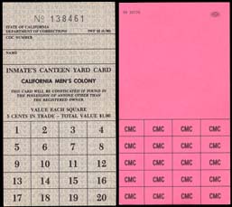 Inmate's Canteen Yard Card, 8/90, I have these in pink, gray, yellow, &
