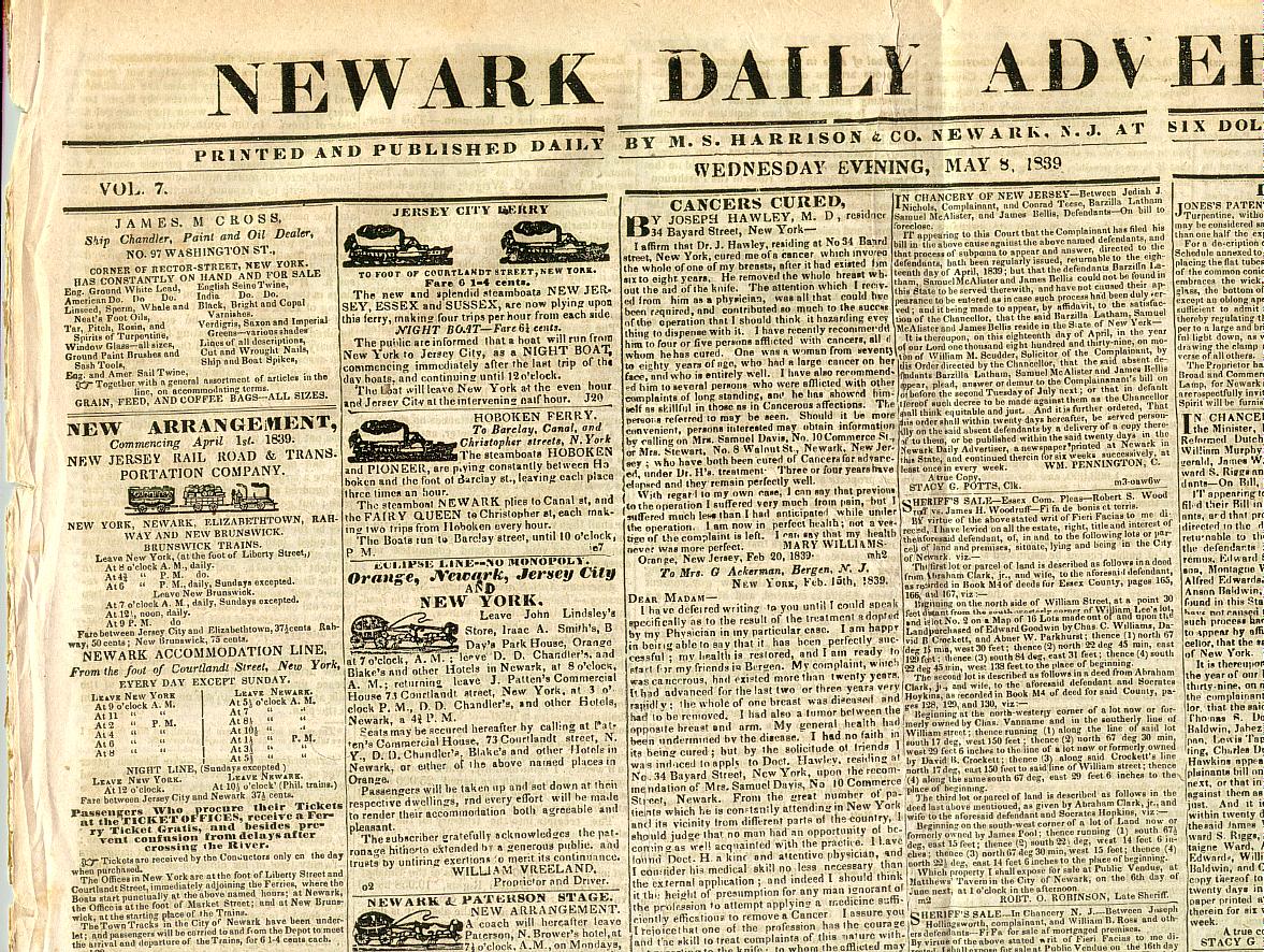 NEW JERSEY, newspaper: The Newark Daily Advertiser, I have several