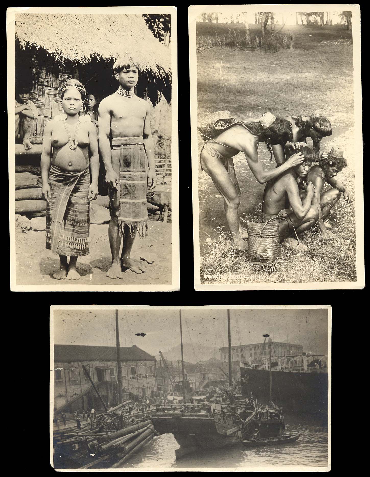 lot of 3 old photos, 2 of indigenous people, 1 of a dock, c. 1930s, ~142x85mm,