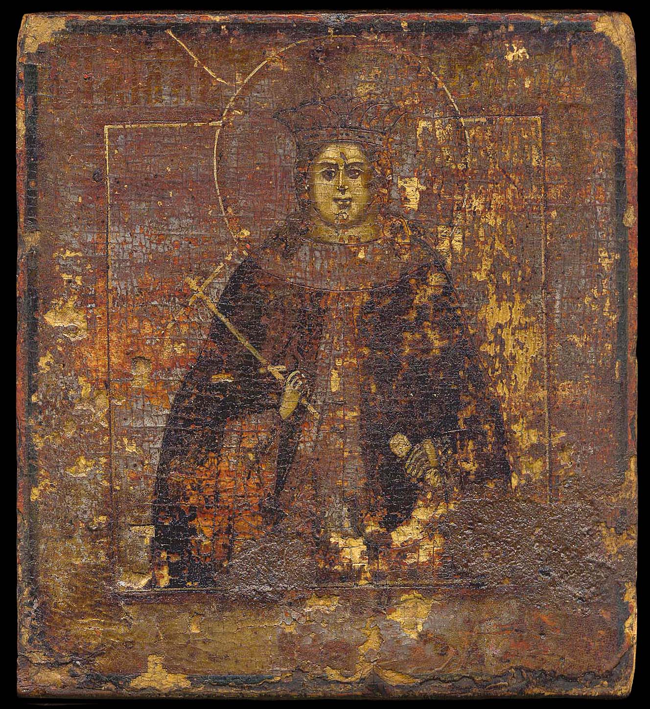 c., icon, 162x177mm (~6.3x6.4"), painted wood, St. Catherine facing,