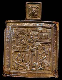 c., icon, 87x96mm, brass, crowned Madonna & child,