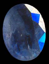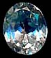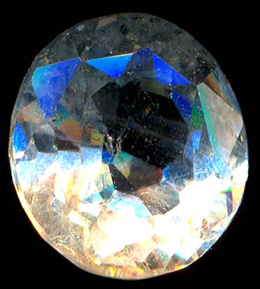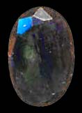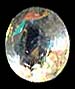 London blue, ~3.5g, 9x10mm oval, faceted oval, big bug-shaped flaw in corner,