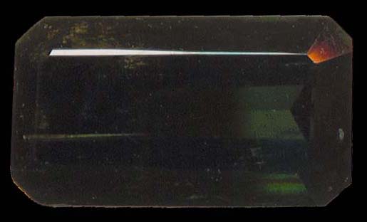 emerald cut (rectangular), faint bluish, Pakistan, small flaw in back,