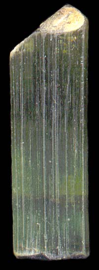 30x8mm trihedral columnar crystal, green, mostly transparent, from Pakistan,