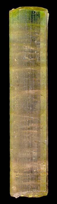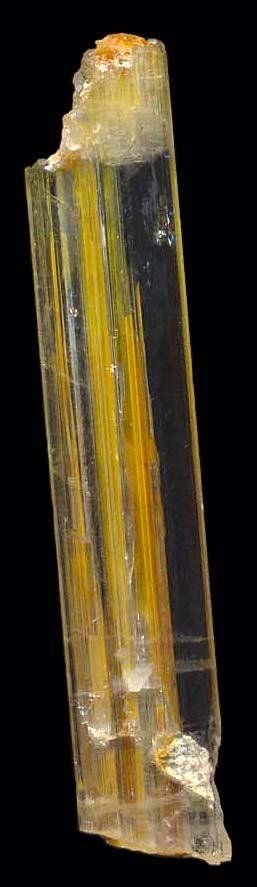 colorless crystal with a yellow stripe, 30x7x2mm, from Pakistan, $15.00