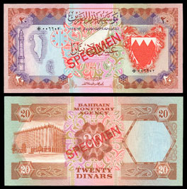 BAHRAIN, 20 dinars P10s L. 1973 star in ornament R of map