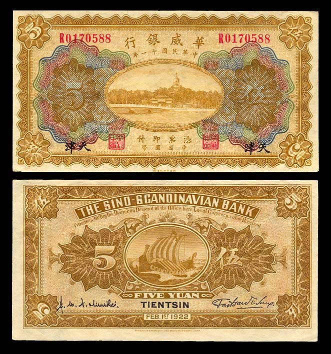 Bank, 5 yuan, P-S592b, 1.2.1922, viking ship,