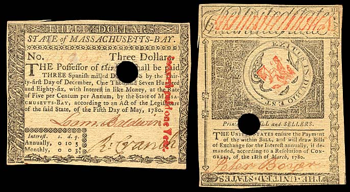 MASSACHUSETTS, 3 dollars P-S1338 5.5.1780 punch